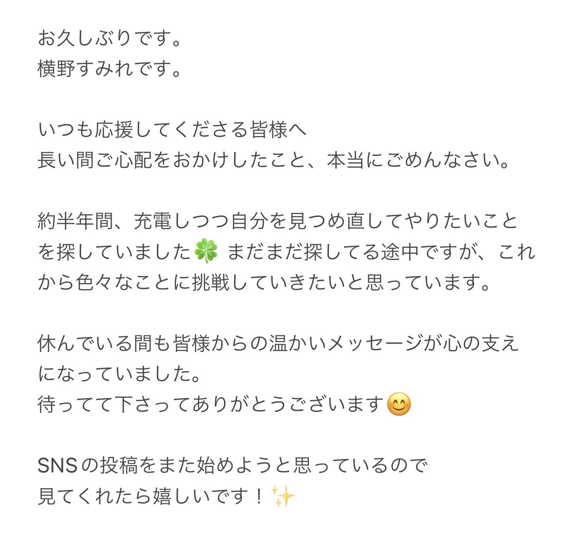 少し前にサイゾーさんが記事にした有名アイドルグループからAV転身するアイドル、誰か色々話題になっていましたが、横野すみれがこのタイミングで半年の休業から復活、「新しい仕事をする」と意味深発言!結構、条件当てはまっていますね・・・