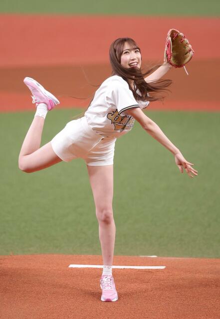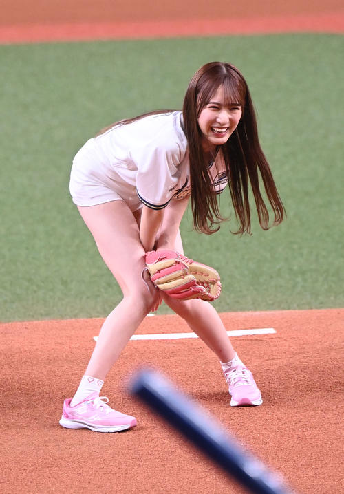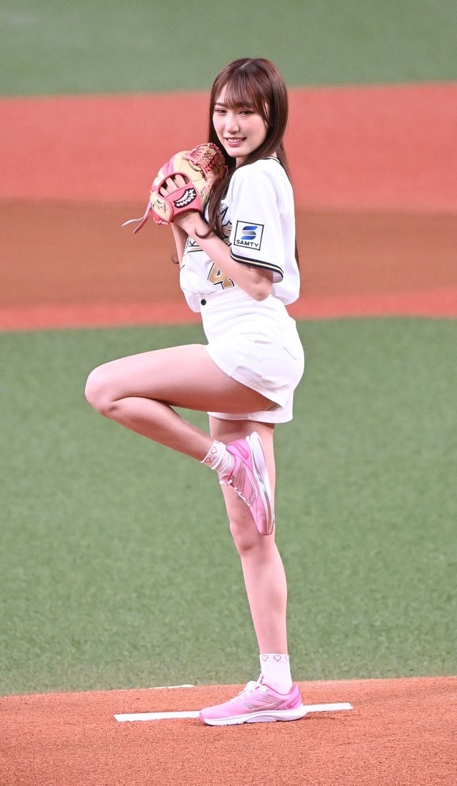NMBアイドルさん、始球式が神スタイルすぎてショーパンからチラ見せwwwww