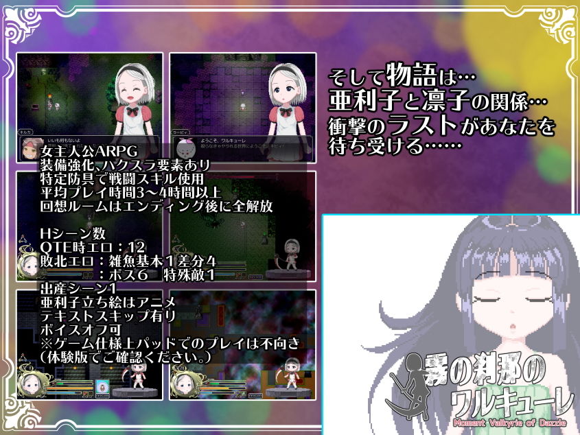 RPGツクールVX Aceで作成された作品で、体験版で動作確認が必要。