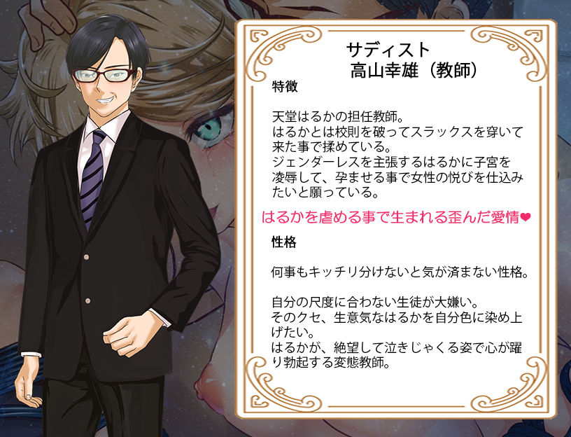 | ジャンル | 拘束,制服,学園もの,妊婦,寝取り・寝取られ・NTR,ハーレム,シミュレーション,靴下,オールハッピー,搾乳,男性向け,成人向け,アクセス上位ジャンル |