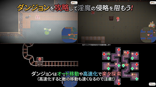 フルボイスの女性キャラやエッチな音声も充実で、楽しみながら冒険してみよう!。