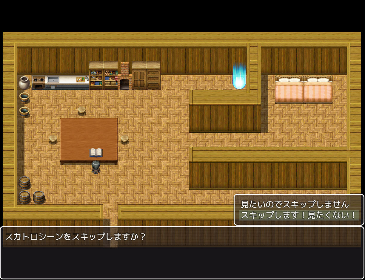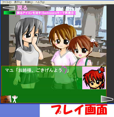 装備変更による立ち絵着せ替えやスキップ機能あり。