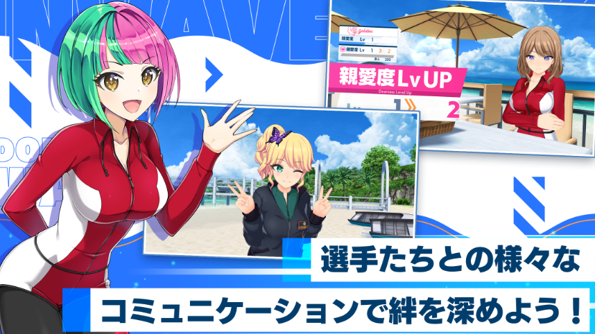 「ドルフィンウェーブ」はとある南国の人工島で盛んにおこなわれる「ジェットバトル」というマリンスポーツに携わるヒロインたちを育成し爽快なバトルを体験できるゲームです。