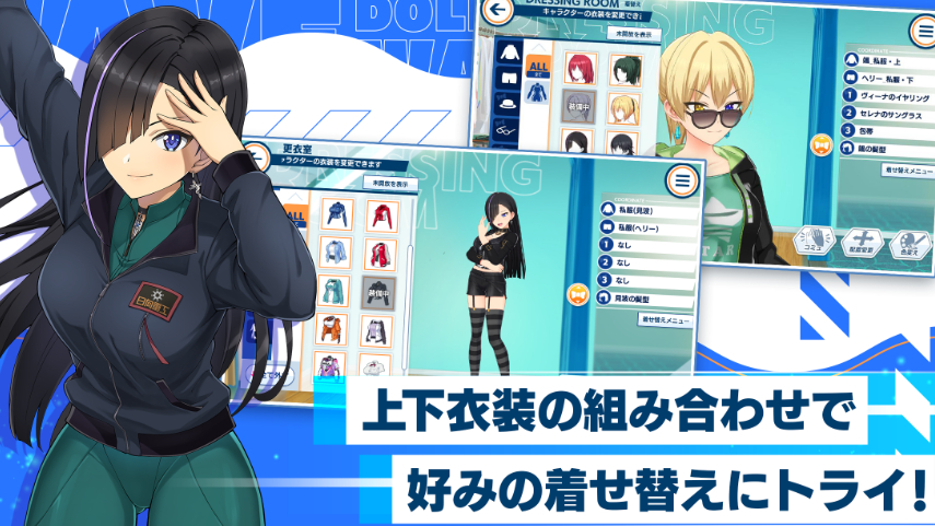 ヒロインの女の子たちは自分好みに育成可能で、衣装やアクセサリー、髪型などを自在に着せかえることができます。