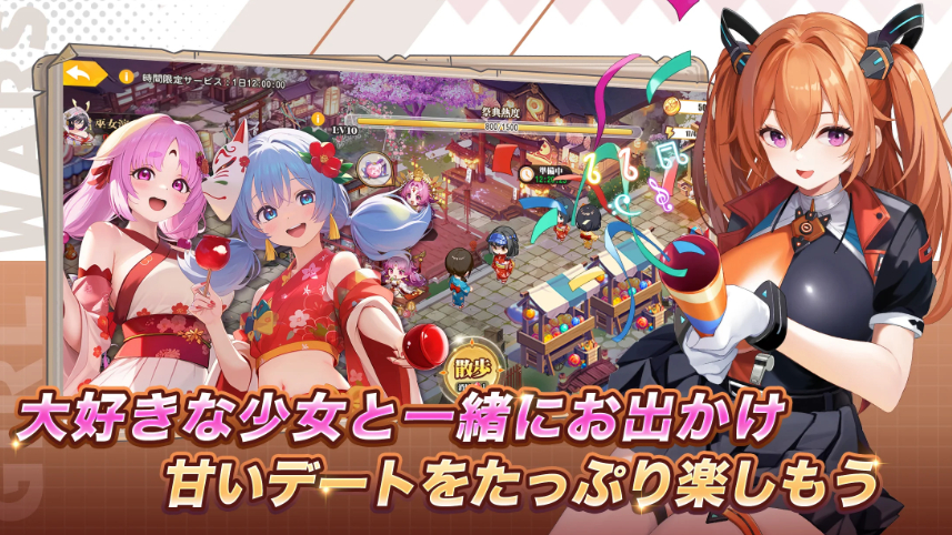「少女廻戦 時空恋姫の万華境界へ」は手軽にプレイできる放置ゲームとタワーディフェンスの両方が楽しめる新感覚の育成放置RPGです。