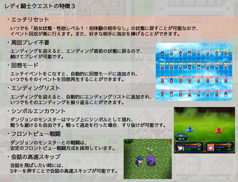 エロステータス表示や装備品のランダム性無しで手軽に楽しめる。