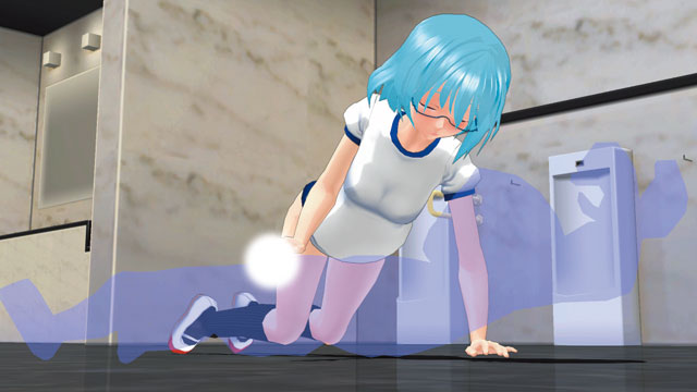 リアルタイム3Dとイラストが融合したプレイで、恥じらいと快楽が交錯する。
