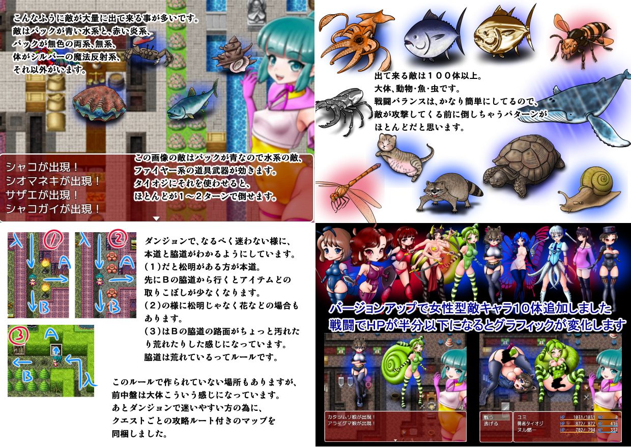 個性豊かな性癖を持つモンスターたちがパーティを襲い、様々なシチュエーションを楽しめる。