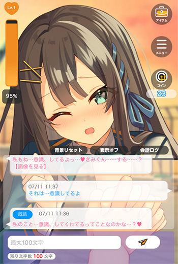 リアルタイムチャットというシステムを採用していて、自分が書いたチャットに対して女の子が変身をしてくれます。