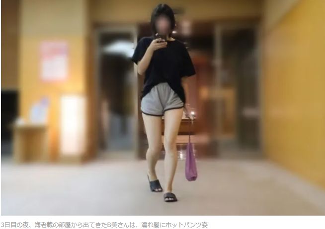 次の公演のため、鳥取県米子市へ移動した海老蔵を待っていたのはB美さんだ。ボブカットが似合う30歳前後の女性。このB美さんとは、同じ旅館で別々の部屋を取っていたようだが、深夜まで同じ部屋で2人きりの時間を過ごしていた。