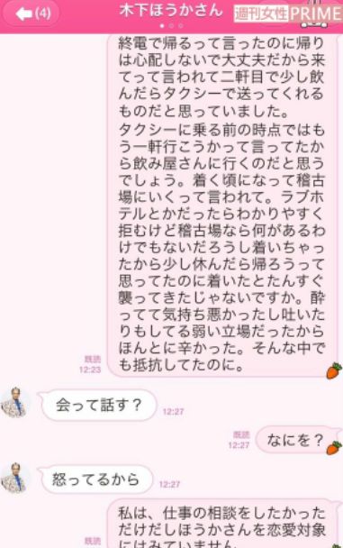 その後木下は挿入を続けたが、Sさんの必死の抵抗を受けて、最終的には性交を中断したという。