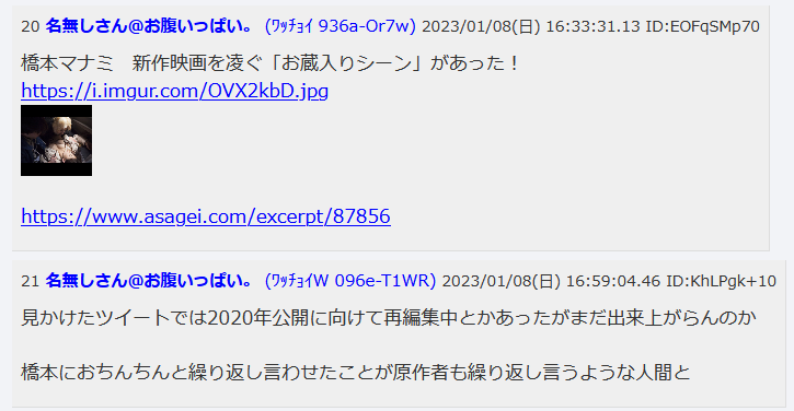 5ちゃんねるの濡れ場スレに2017年にお蔵入りした橋本マナミのレイプシーンがあり、乳首も出してぺろぺろ舐められたと言われる問題の映画「あなたもまた虫である」の試写会で配られたと言われる映画のレイプシーンの画像が貼られていました。この映画では橋本マナミはレイプされ男性恐怖症になるストーリー。その後、彼氏に橋本マナミが乳首をぺろぺろ舐められるシーンもありバストトップ解禁しているそうです。しかし、原作が実話を元にしている事から、映画を見た原作者からクレームが付いて、今に至るまで完全に封印されているという事。橋本マナミのビーチクのシーンだけでも見たいけど、なんとかなりませんかね?橋本マナミのグラビアでもビーチクはこちら!