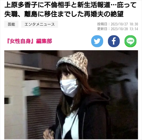 あーあの不倫女か。夫自殺させた張本人やろ。沖縄逃げて悠々自適とか腹立つわ。