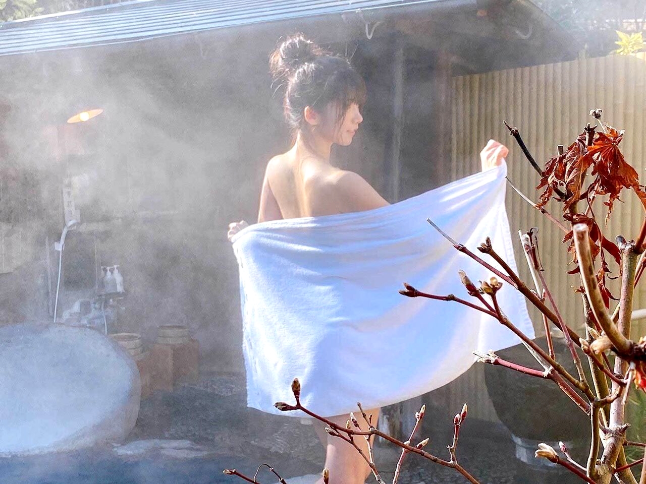 えなこ、撮影中にタオルを落としてしまいアソコがポロり