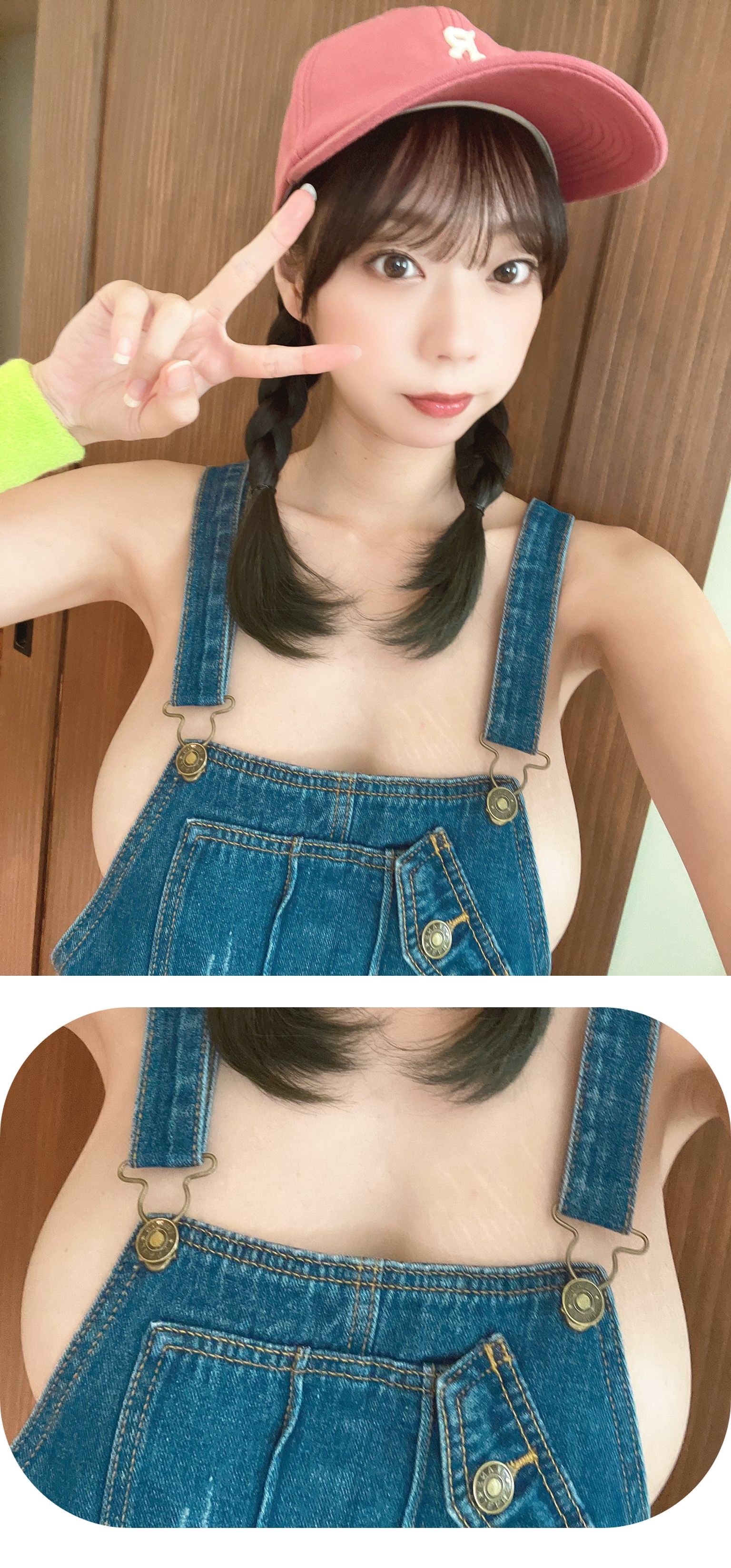 言うほど大した事ねーな まずオーバーオールのサイズがブカブカすぎる もっと小さいサイズ着てピチピチにした方がいい あと正面からの横乳より側面からの横乳だろう