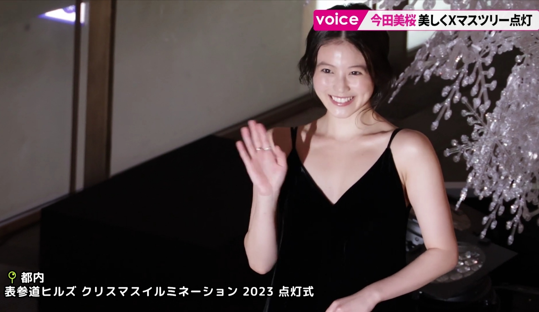今田美桜、クリスマスイルミネーション点灯式に参加し、ドレス姿で谷間を披露しています。上からのカメラで谷間がチラっと見えてますね。今田美桜のお楽しみすぎる体はコチラ