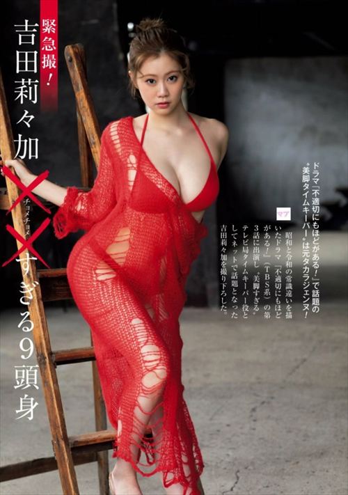 過去ネタ:元タカラジェンヌ吉田莉々加、人生初グラビアおっぱいがエロい!身長173cmの9等身美女がデカパイすぎるwww