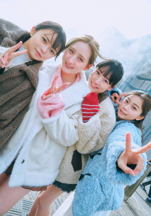 4人での仲良しショットは特に秀逸で、笑い合いながらの自然な表情や、互いの絆を感じさせるハグや並びポーズが、青春の儚さと温かさを同時に描き出している