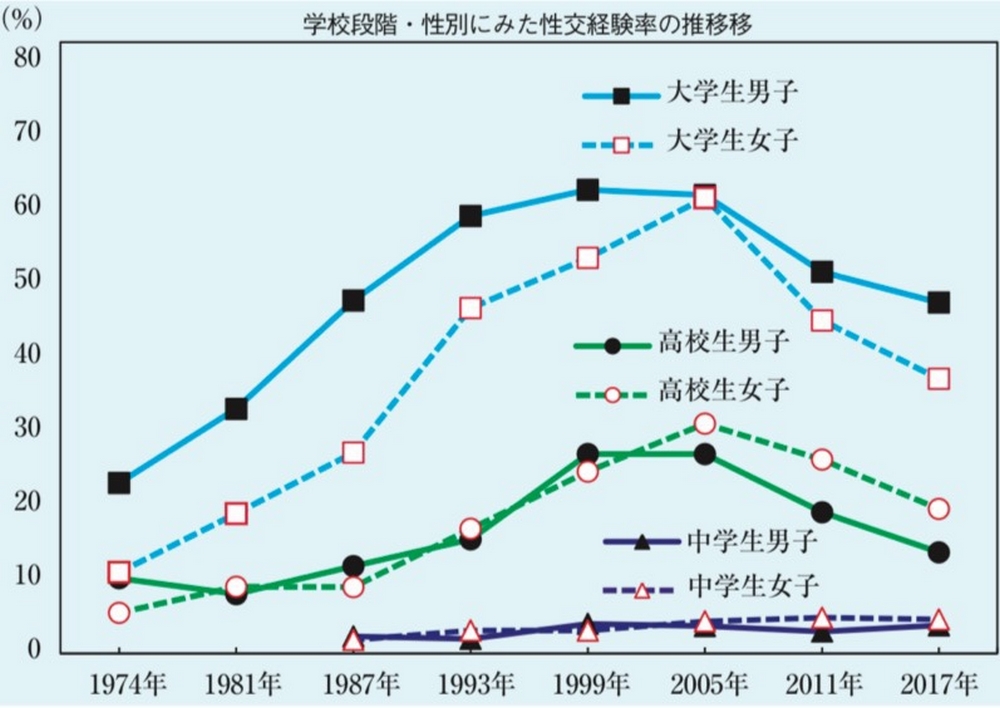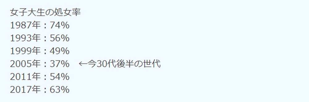 【統計】女子大生の『処女率』の『推移』がヤバい