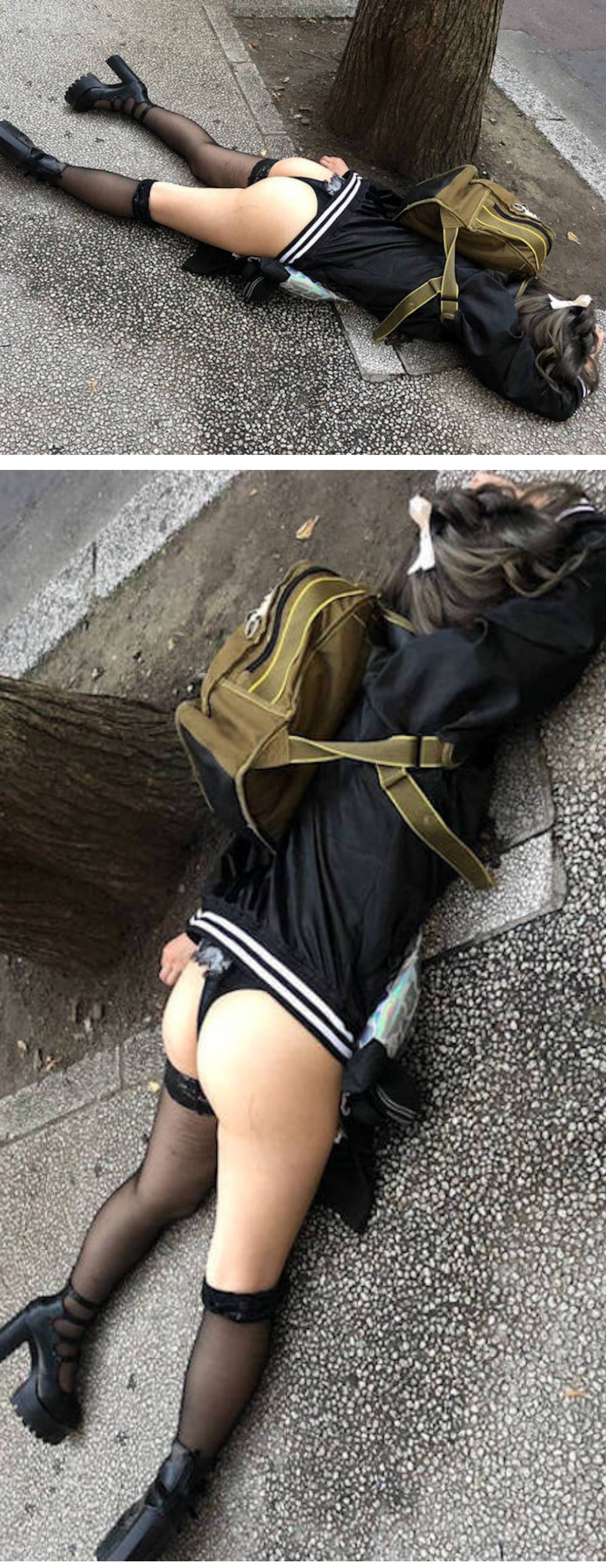 【仰天】道路にケツ丸出しで倒れてる人が・・・