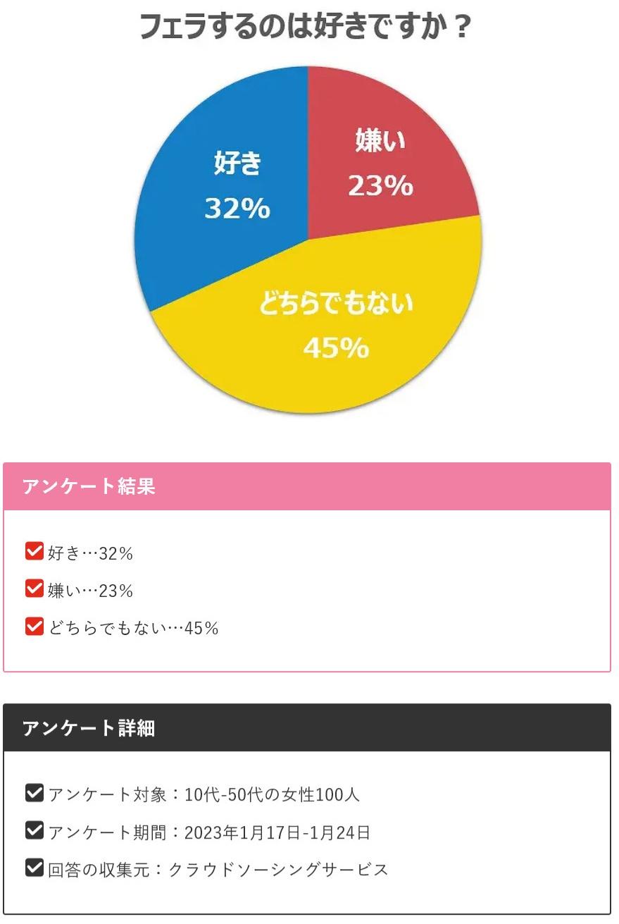 フェラチオが好きか女性ニアンケートとった結果、どちらでもないを含めると約7割がそんなに好きでなかった模様!好きな人も3割はいるんですね!このフ○ラチオGIFの詳細教えてくれはコチラ