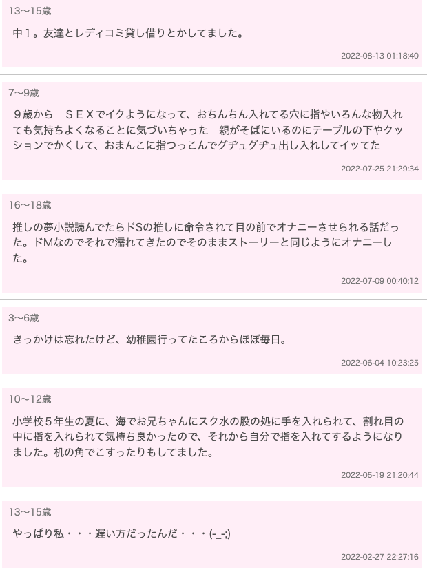 女子初オナニーのアンケート、思った以上にエロいw
