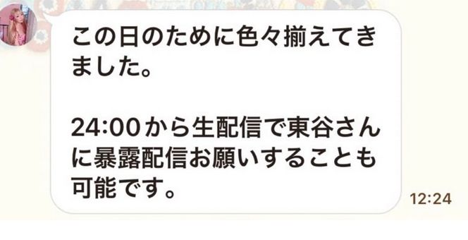 〈24:00から生配信で東谷さんに暴露配信お願いすることも可能です〉