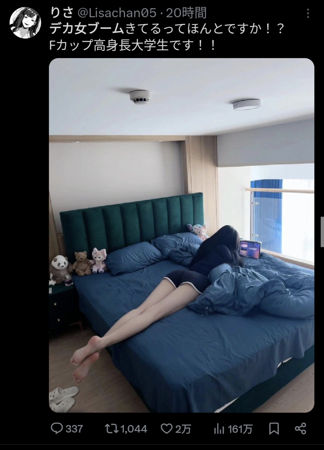 デカ女ブーム到来とのことで高身長グラドルやAV女優がXで意気込んでいる模様!すぐにこのブーム去りそうな気もしますがw女さん、メルカリで下着を売って5000万円稼いでしまうはコチラ