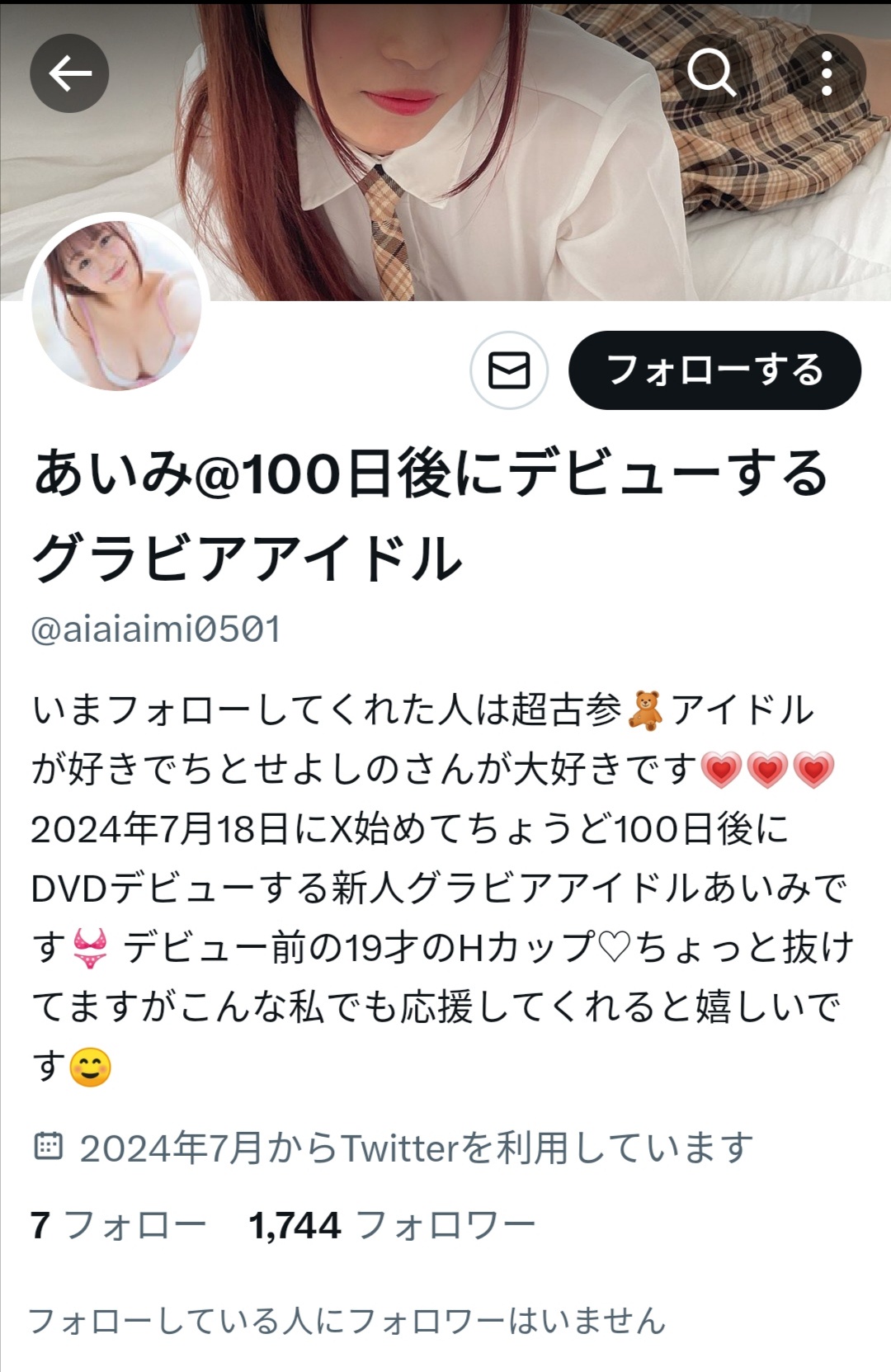 19才Hカップで今度グラビアデビューするJDあいみです🧸デビュー前から応援してみませんか?♡ pic.twitter.com/UaIVAOQA8b— あいみ@100日後にデビューするグラビアアイドル (@aiaiaimi0501) August 16, 2024