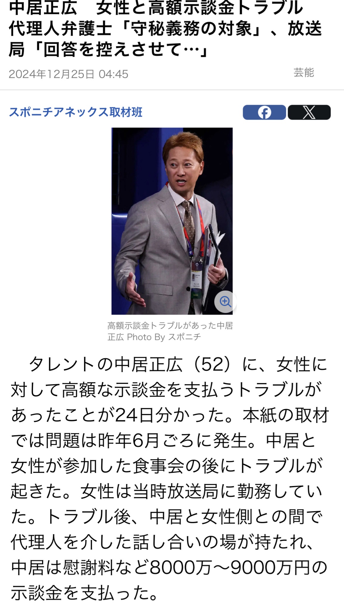 — スポーツニッポン新聞社(スポニチ)【公式】 (@sponichiannex) December 24, 2024