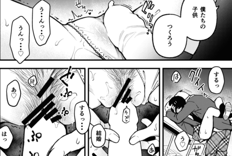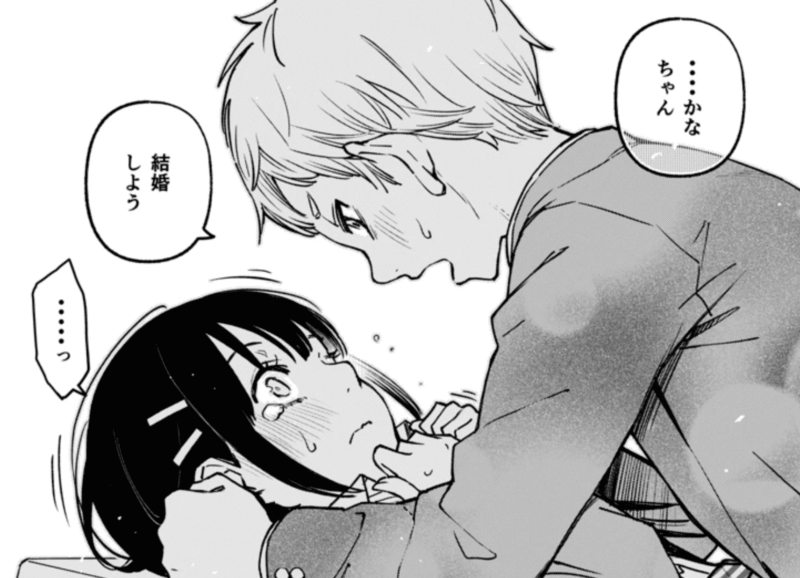 すると次の瞬間、アキくんは勢いよくかなちゃんを机に押し倒しながら、「結婚しよう」と告げます。