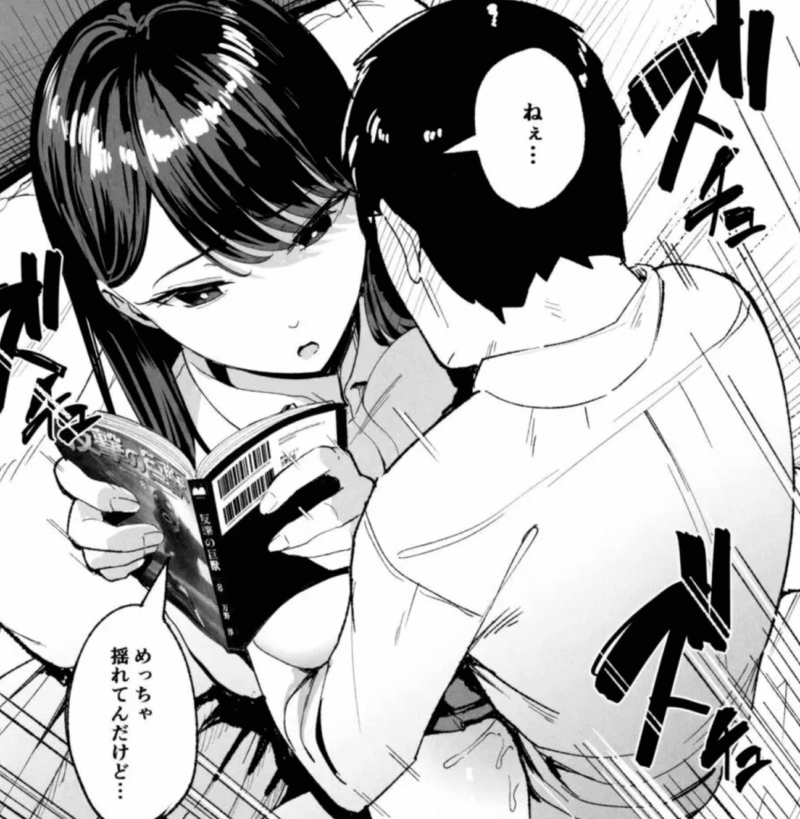 一方の黒田さんはというと、漫画に集中している様子で、オタクくんの熱心な愛撫にもまったく動じる気配を見せません。
