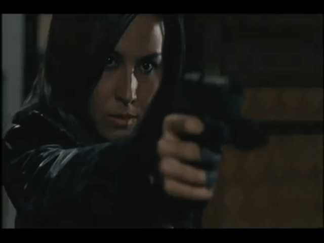 映画「極道の妻たち 情炎」では、革ジャン姿の杉本彩が圧倒的な存在感を放っています。