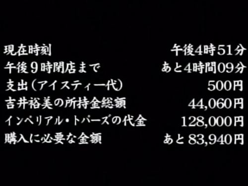 ポップなタイトルとは裏腹に、消費社会に飲み込まれる若者たちの切なさと残酷さが胸に刺さる。観終わった後も、あのトパーズの輝きと乾いた余韻が頭から離れない傑作です。