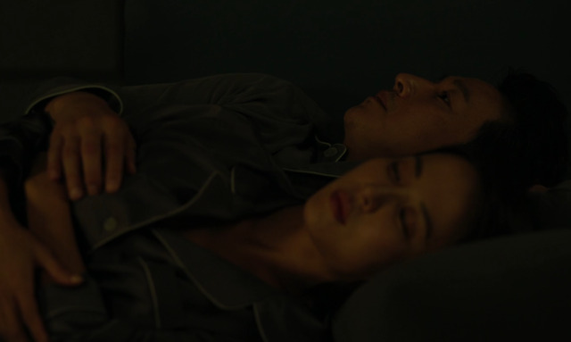 パク家の美しい妻ヨンギョを演じるチョ・ヨジョンが、夫との親密な時間で体を寄せ合います。
