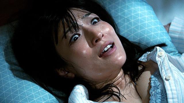 濡れ場では尻や脚のライン、ぶるんと揺れる胸元、汗が光る肌までしっかり映されていて、そこに不気味な恐怖がピタッと重なってきます。